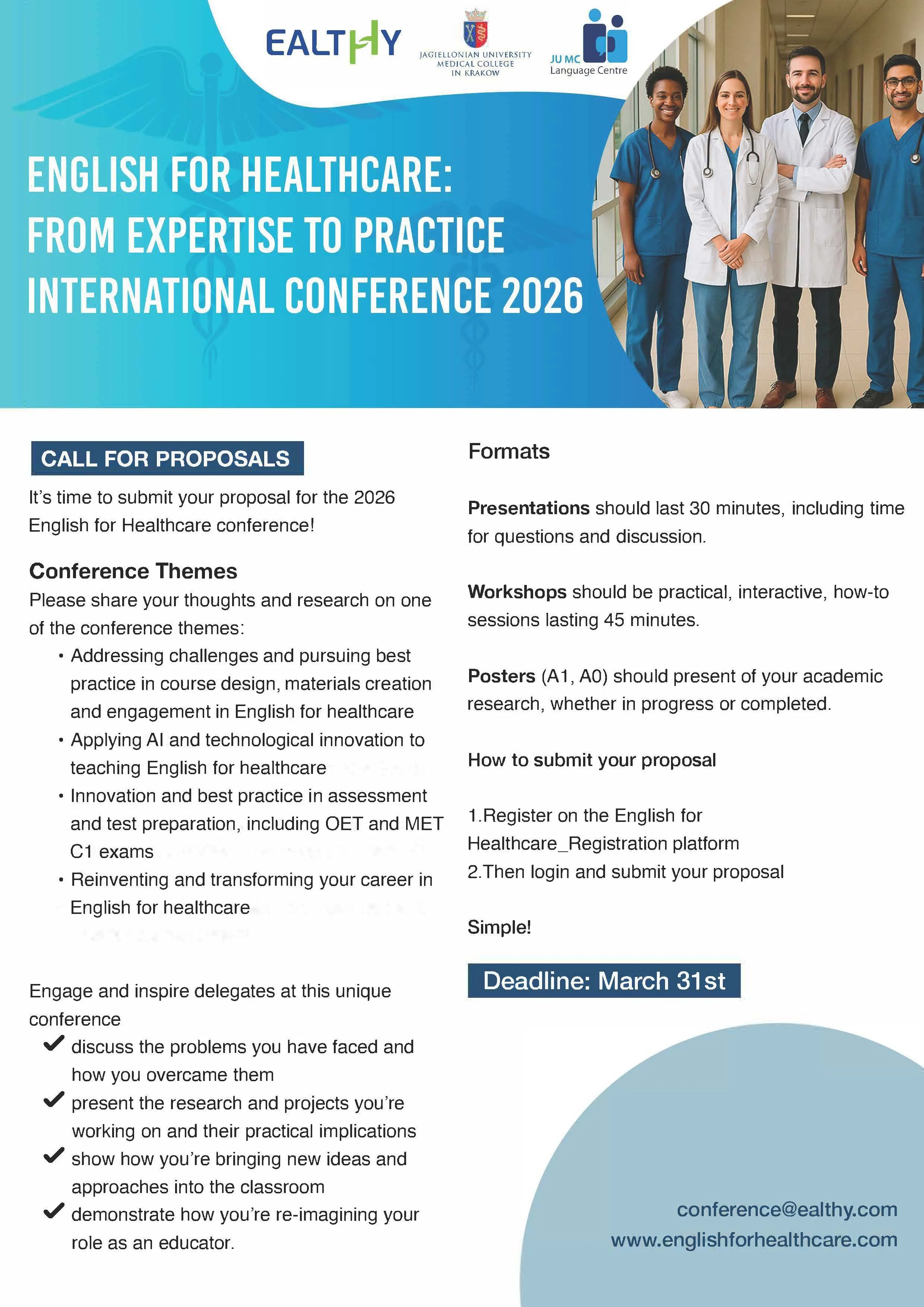The partnership with Jagellonian University Medical College enables us to broaden the scope of expertise, perspectives, and opportunities offered to conference participants, opening up greater space to explore fresh ideas, interdisciplinary dialogue, and innovative approaches to the role of English across healthcare.